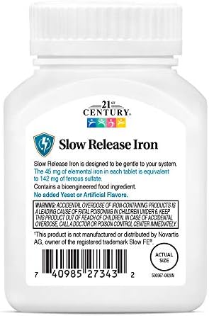 21st Century Slow Release Iron is a high potency iron supplement designed to be more gentle to your system. Unconditionally guaranteed for purity, freshness and label potency. No added sugar, salt, yeast, preservatives, artificial flavors or colors. 21st Century Vitamins and Supplements are manufactured in a cGMP facility under the strictest standards for product quality, including potency and purity. 21st Century prides itself on providing you with a great product at the best value. This statement has not been evaluated by the Food and Drug Administration. This product is not intended to diagnose, treat, cure, or prevent any disease.