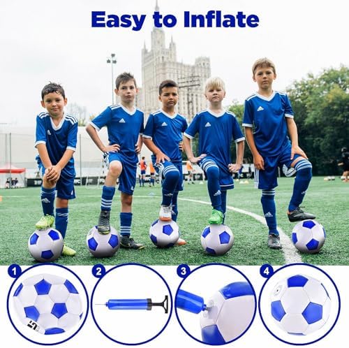 SUFFICIENT SOCCER BALLS SETS: This 6 pack of classic deflated soccer balls set includes everything you need for a game, making it perfect for recreational play and training. It comes with a pump and a mesh bag, ensuring that you have all the necessary equipment to start playing right away. Provide enough balls for team practices, tournaments, or family gatherings, allowing everyone to join in the fun.