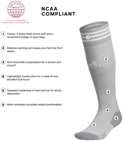These socks allow for optimal ball touch and have a grippy footbed for a stay-put fit. A clean, classic look on the front and a graphic stripe on the back of the sock. These socks have a bold adidas 3-Stripe design wrapping around the calf. These iconic adidas socks have a classic design with knit-in 3-Stripes. The standard in performance for players of all ages. Practice and game sock for developing players. Perfect for all levels of play. The perfect starter sock for soccer, team practice and youth player. Great for any athlete.