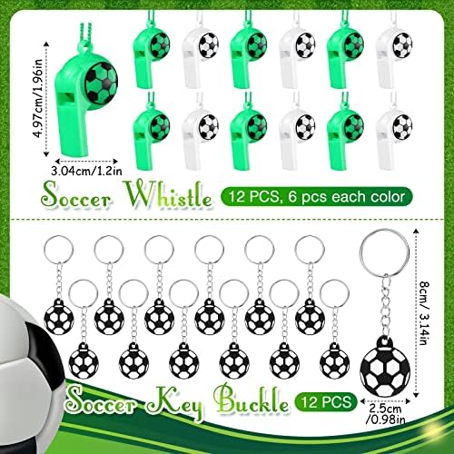 Soccer Party Favors: there are a total of 120 pieces of soccer party supplies, including 10 sheets of soccer temporary tattoos, 50 adhesive soccer stickers, 12 small soccer toy, 12 soccer silicone bracelets, 12 soccer whistles, 12 soccer keychains and 12 double loop lanyards, different items with adequate quantity to satisfy your diverse and soccer party using, decorating and sharing needs