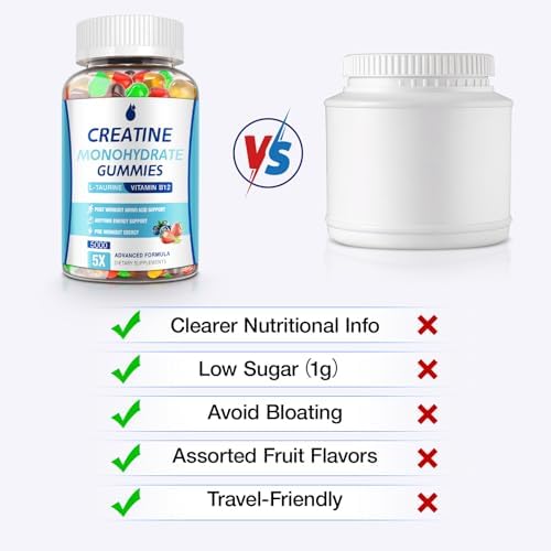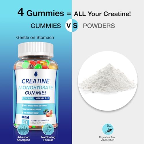 Advanced Absorption Formula: Clinically-Studied 5g creatine monohydrate gummies for rapid uptake, combines betaine anhydrous & L-taurine for synergistic muscle support & energy boost, no loading phase required.