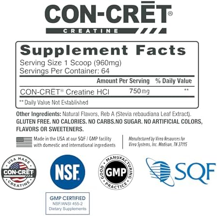 CON-CRĒT Creatine HCl (Creatine Hydrochloride) is 7X Concentrated vs Creatine Monohydrate. Provide cellular energy to all your cells to support Muscle Health, Cognitive Function, Immune Support, and Heart Health.