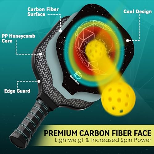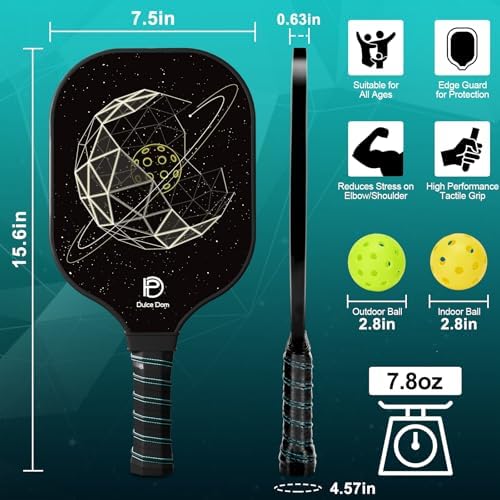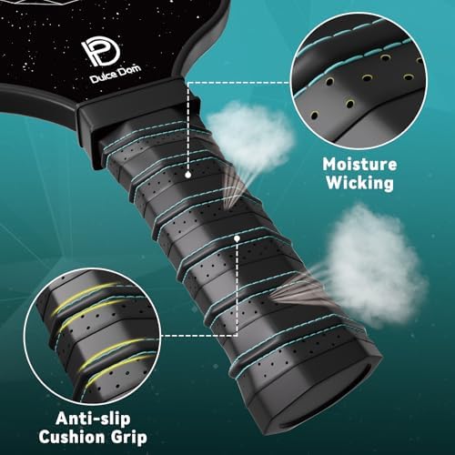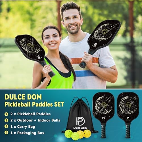 【USAPA Approve Pickleball Paddle】DULCE DOM pickleball paddles are USAPA certified for both casual play and official tournaments. The pickleball set contains 2 lightweight carbon pickleball paddles, 4 high-performing pickleballs and carrying bag.