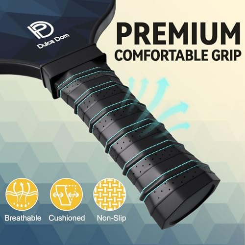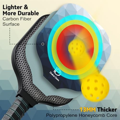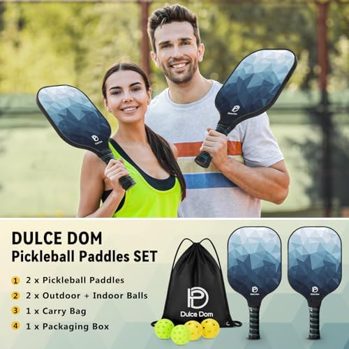 【USAPA Approve Pickleball Paddle】DULCE DOM pickleball paddles are USAPA certified for both casual play and official tournaments. The pickleball set contains 2 lightweight carbon pickleball paddles, 4 high-performing pickleballs and carrying bag.