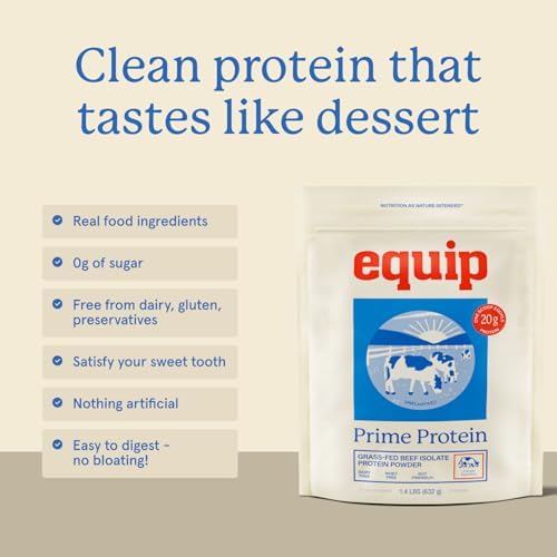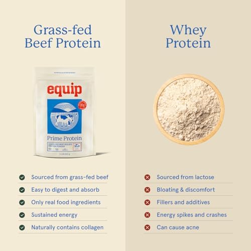 High Protein, Low Sugar: Prime unflavored protein powder delivers 21g+ of bioavailable complete protein made from grass fed beef protein powder, making it an excellent choice for your keto, paleo, carnivore, or protein-forward diet. Unlike many other protein isolate powders, it contains no added sugar, soy, dairy, gluten, egg, or whey. Equip’s clean formula supports bloat-free nutrition and delivers the same amount of protein as a 4oz serving of steak.