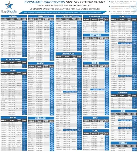 EXTENDED WARRANTY. VIP SERVICE. EzyShade customers have long benefited from generous product warranties and industry-leading customer service. All EzyShade products with a Vehicle Size Chart (car covers included) even come with a Great Fit Guarantee!