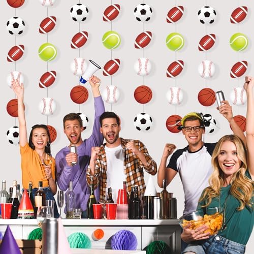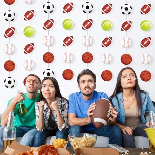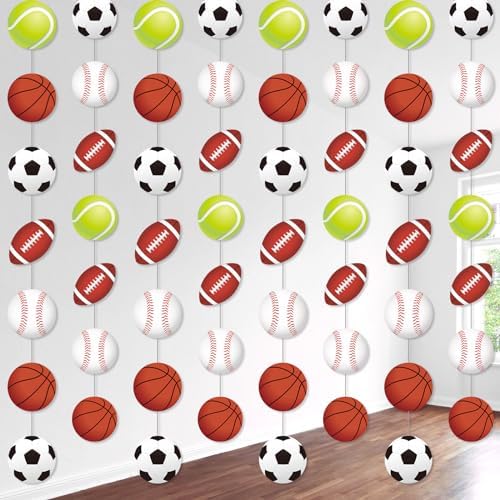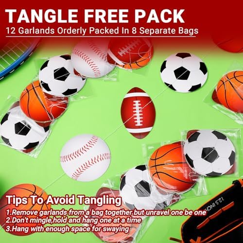 Convenient to Use: this sports themed hanging decor is the ideal decoration for your sports themed party, no need to use tape or other string to make the loops; The paper garland is preassembled and comes with loops to hang; You just need to open it up on party day and hang it on doors, walls, ceilings, trees, windows, or somewhere you want to save your preparing time