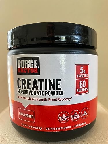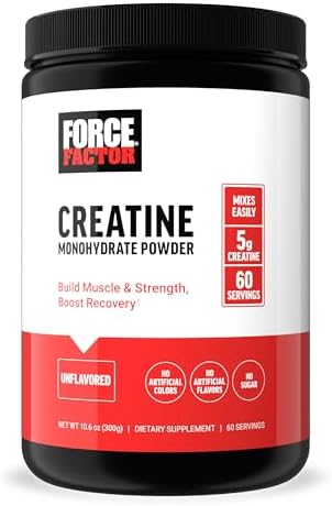 Home Products FORCE FACTOR Creatine Monohydrate, Creatine Powder for Muscle Gain, More Strength, and Faster Workout Recovery, Clinically Studied Micronized Creatine 5g Dose Per Serving, Unflavored, 60 Servings