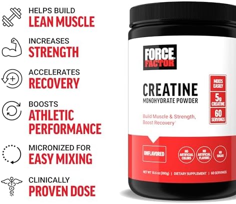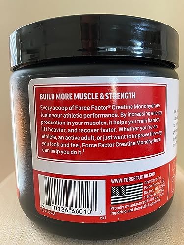 HELPS BUILD LEAN MUSCLE & STRENGTH: Every scoop of Force Factor Creatine Monohydrate delivers the fuels your athletic performance. By increasing energy production in your muscles, it helps you train harder, lift heavier, and recover faster.