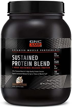 ABOUT THE PRODUCT: GNC AMP Sustained is an innovative dietary supplement containing four protein sources, including native whey isolate, micellar casein, egg whites, and whey hydrolysate, delivering seven hours of sustained protein release throughout the day.