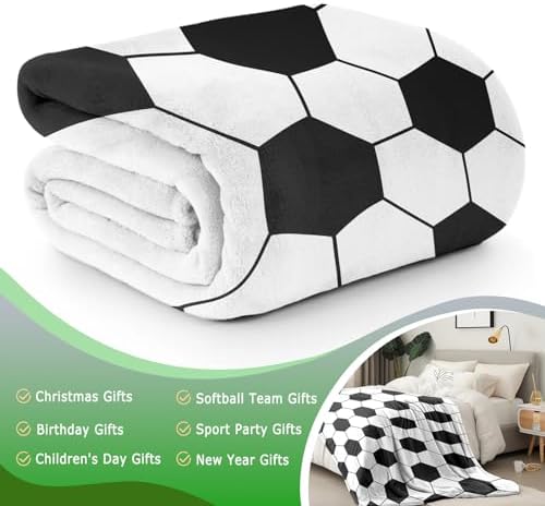 ⚽【Easy to Care】These soccer-themed soft blankets are designed to withstand machine washing in cold water on a gentle cycle, ensuring they won’t fade or lose their quality.