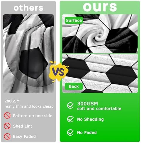 ⚽【Soft & Fuzzy Material】The upgraded flannel soccer blanket, made of 300 GSM microfiber, is ultra-soft and skin-friendly for children.