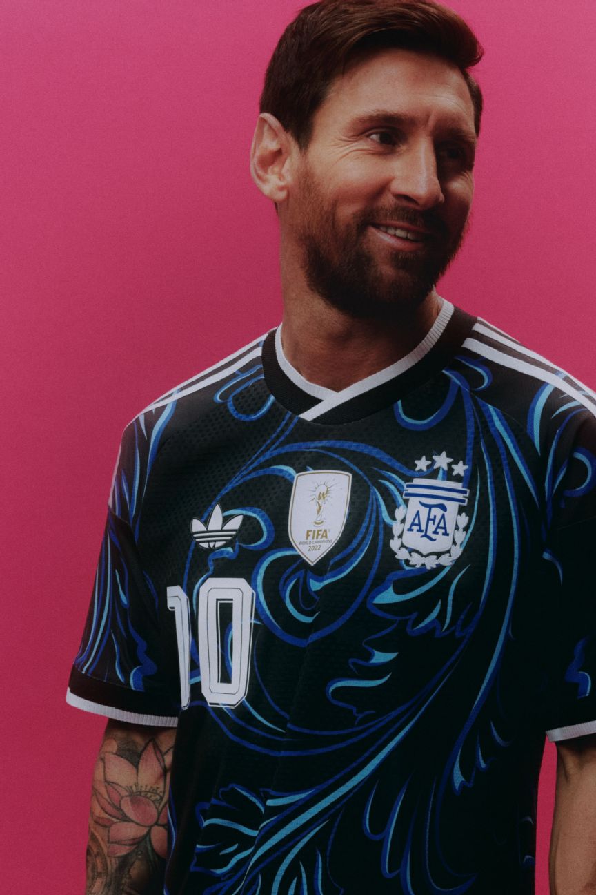 One of the more garish Argentina away kits in recent memory, the black shirt is covered all over in a swirl of foliage picked out in various lighter blue hues. The cascading fronds on the shirt are actually an homage to the renowned Fileteado Porteño folk art style that can be found adorning almost everything in Buenos Aires — from buildings to buses to bicycles. The result is undeniably gaudy but we imagine some will appreciate its unique charm.