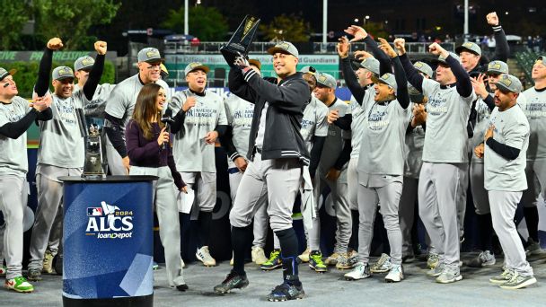 What’s on the line for the Yankees: The obvious stakes are that the Yankees are trying to end a 15-year title drought now that they’ve quenched their pennant thirst. With 27 titles all time, New York’s lead on the cosmic standings board is secure for eons to come but it has been a while. The last time New York won it all, Mariano Rivera and Derek Jeter were active and Juan Soto had just celebrated his 11th birthday. More than the unrequited longings of Bronx fans is the reality that this might be the Yankees’ best chance for some time to come. Sure, the Yankees are always contenders to win it all but his Soto-Aaron Judge pairing is a rare thing and if Soto signs elsewhere, it’s also fleeting. When you think of all-time Yankee power duos, the specter of Lou Gehrig bolting for, say, the on-the-other-side-of-the-river Giants was not something the Babe Ruth era Yankees ever had to confront. Soto might stay of course but just in case, this is as good a time as any for the Bombers to take World Series No. 28. — Bradford Doolittle